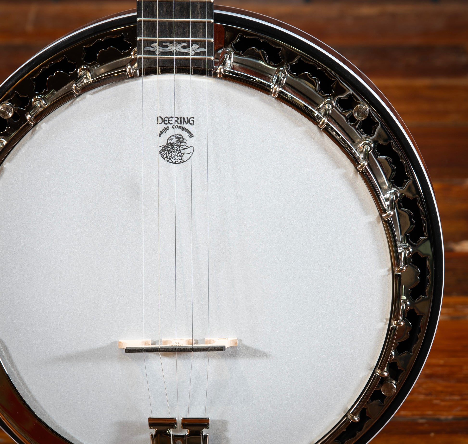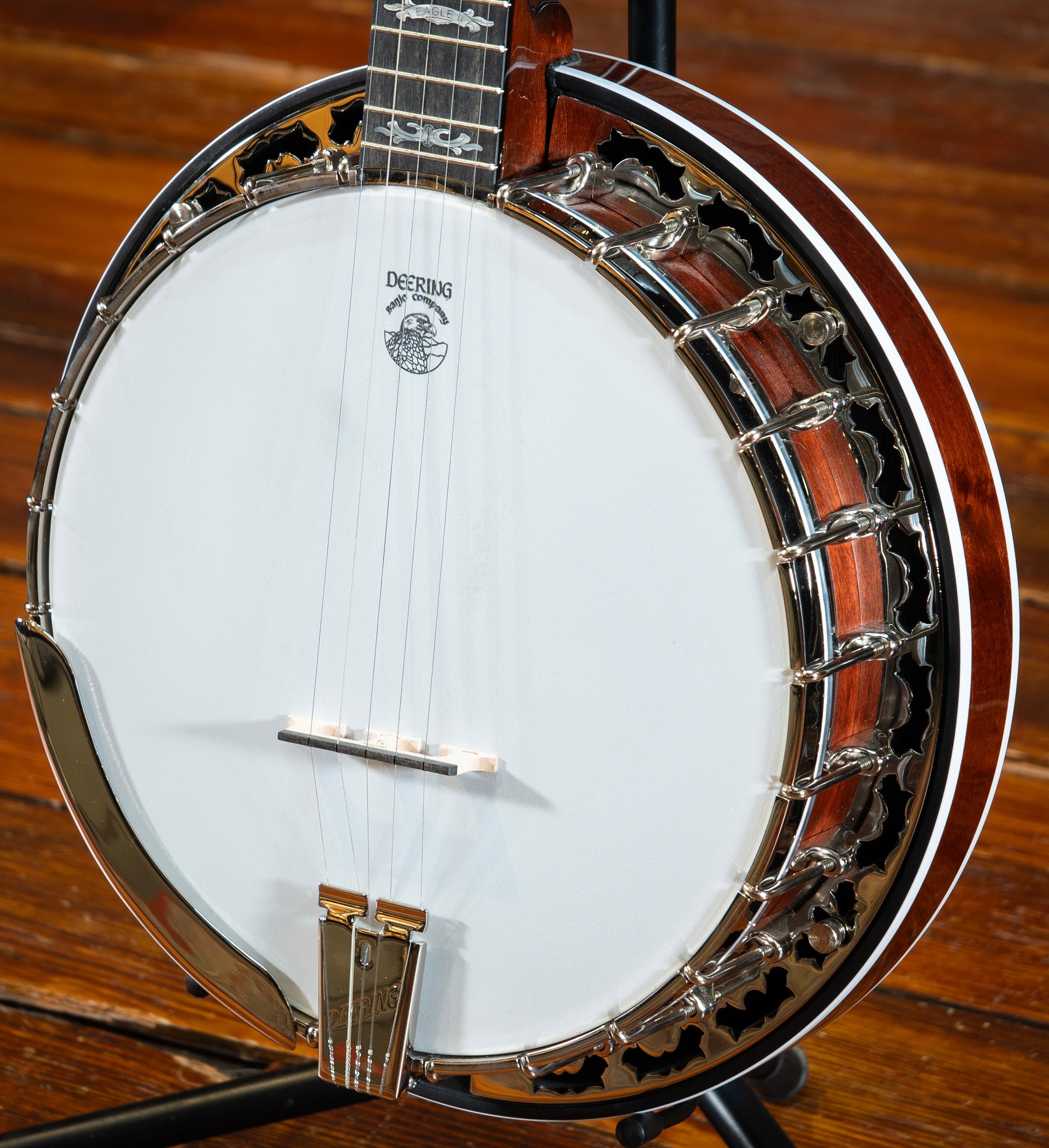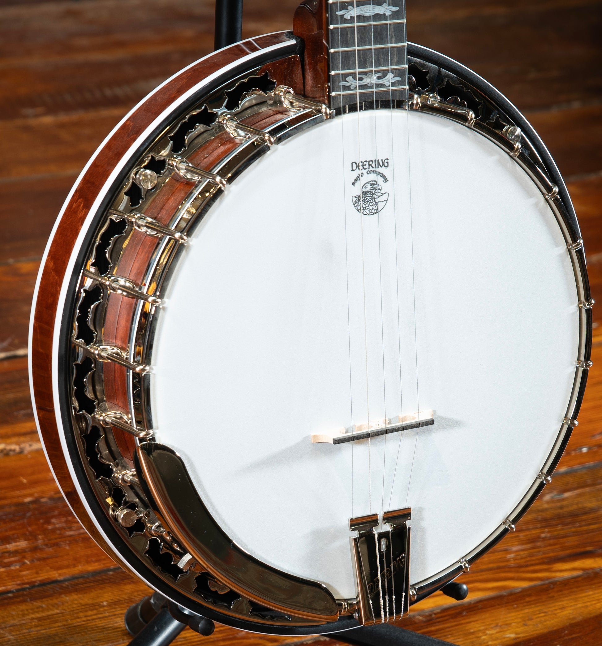 Deering Eagle II - The Eagle II banjos represent the latest in tone ring innovation from the collaborative efforts of Greg Deering and Jens Kruger. It features the ground breaking patented Twenty Ten Tone Ring - a Deering original crafted unlike any other traditional tone ring. Made of brass and producing a tone with a very rich mid-range and good bass and treble response, the most unique feature of the Eagle II banjos is that it is suitable to all styles of banjo playing such as bluegrass, clawhammer, jazz, Irish, among other styles. Rarely has there ever been a tone ring model that could claim this but customers who own the Eagle II have proclaimed its utmost versatility in this respect. Whether you are a professional or a dedicated banjo enthusiast, the Eagle II will help you soar to new heights!