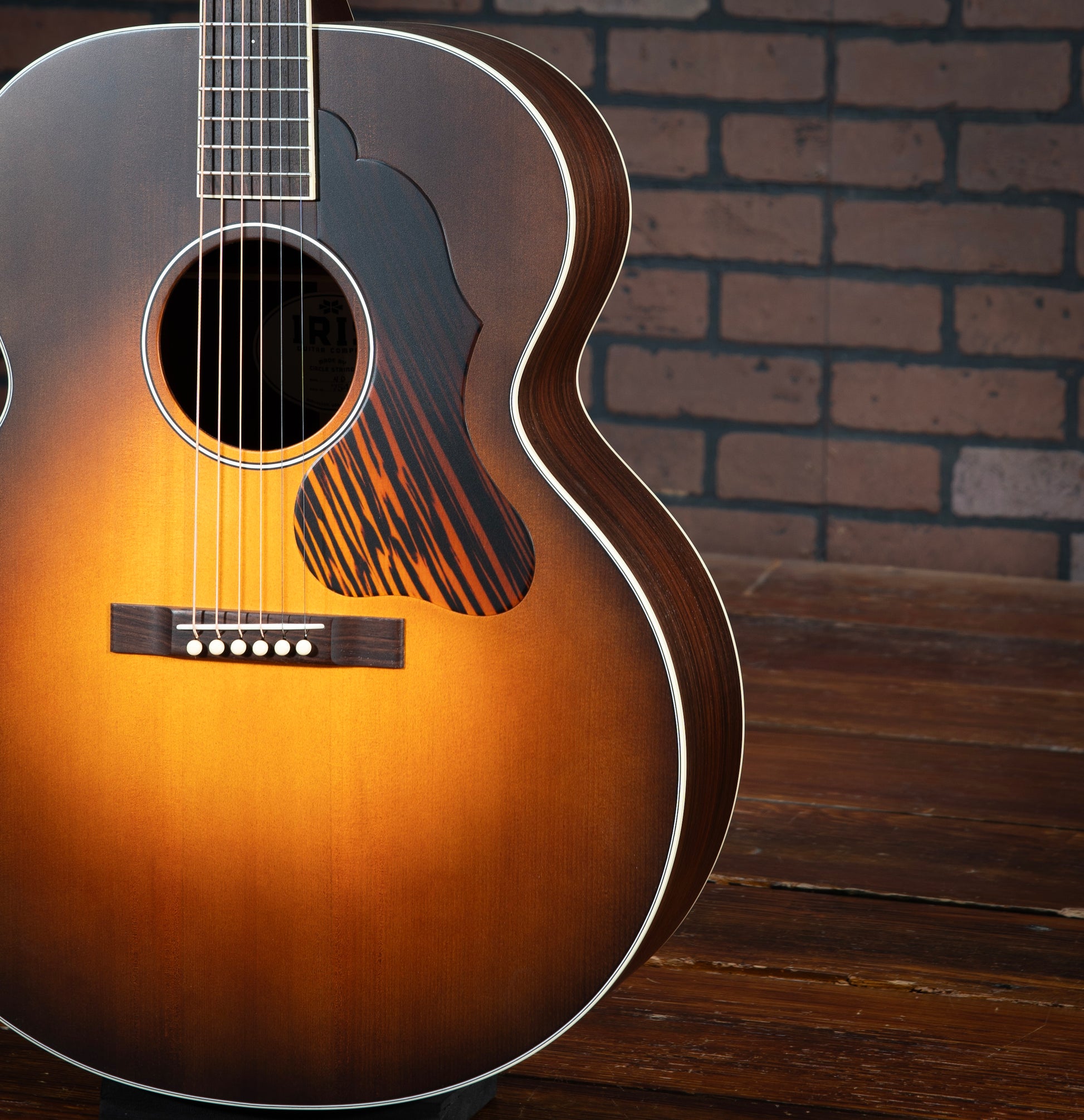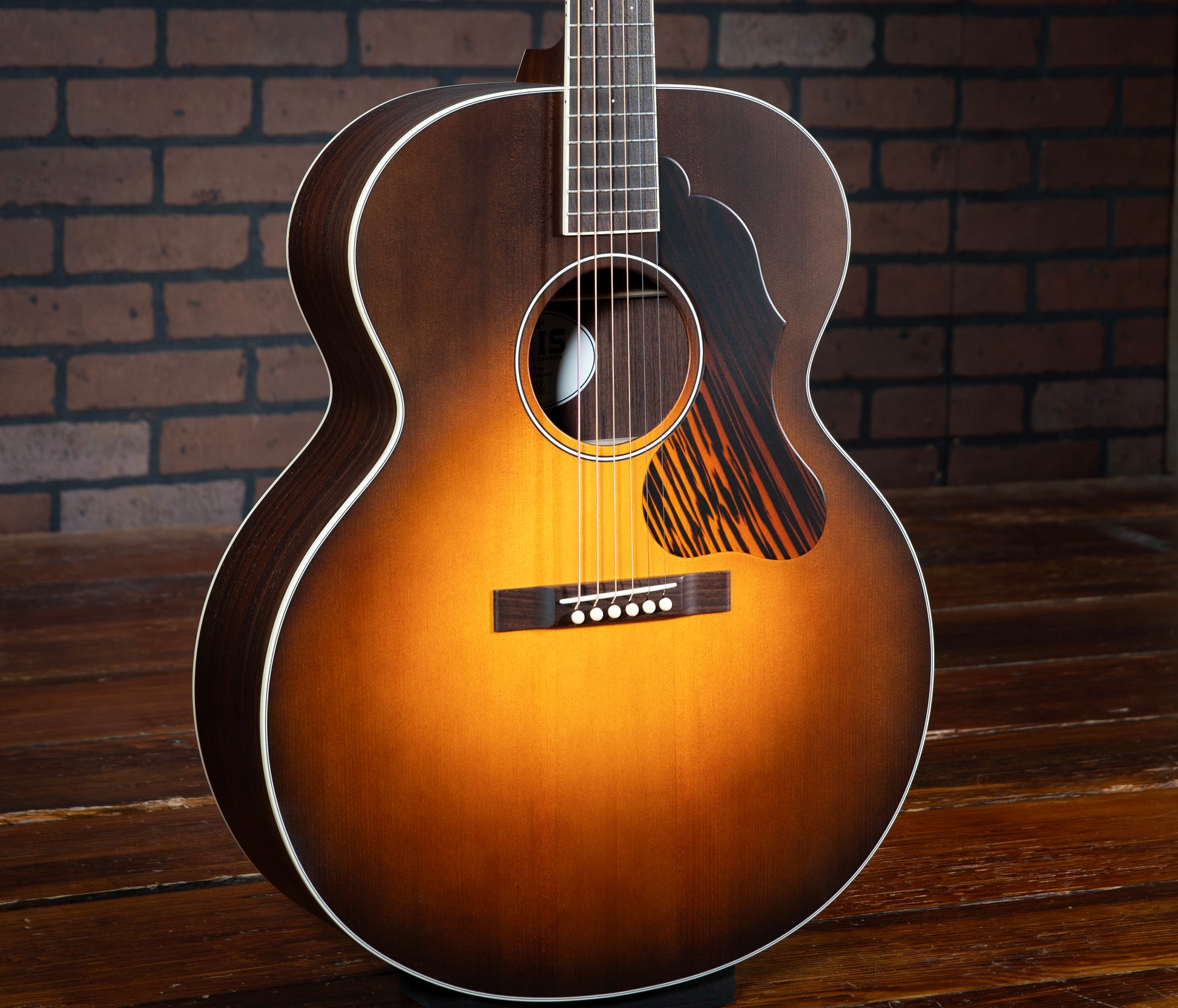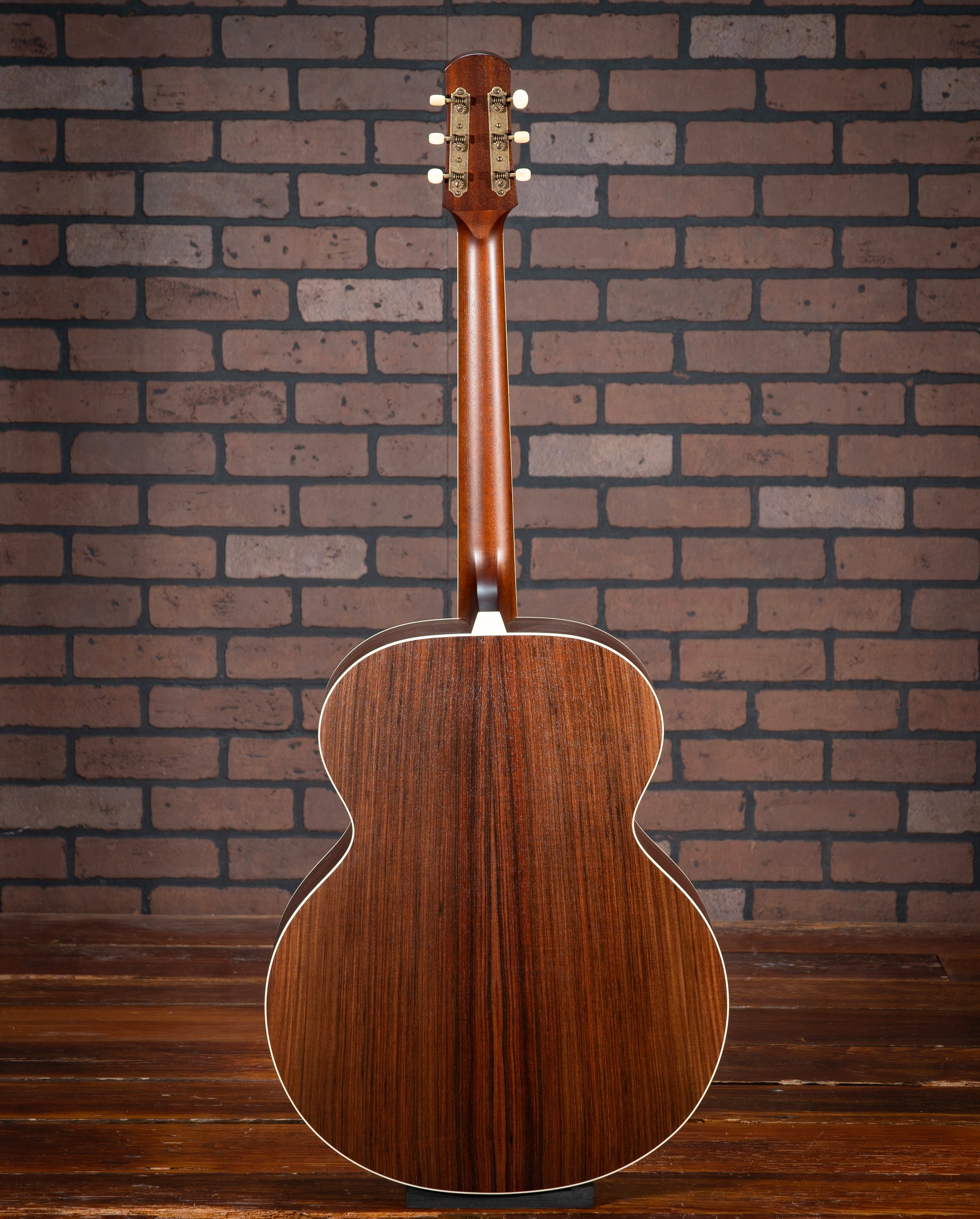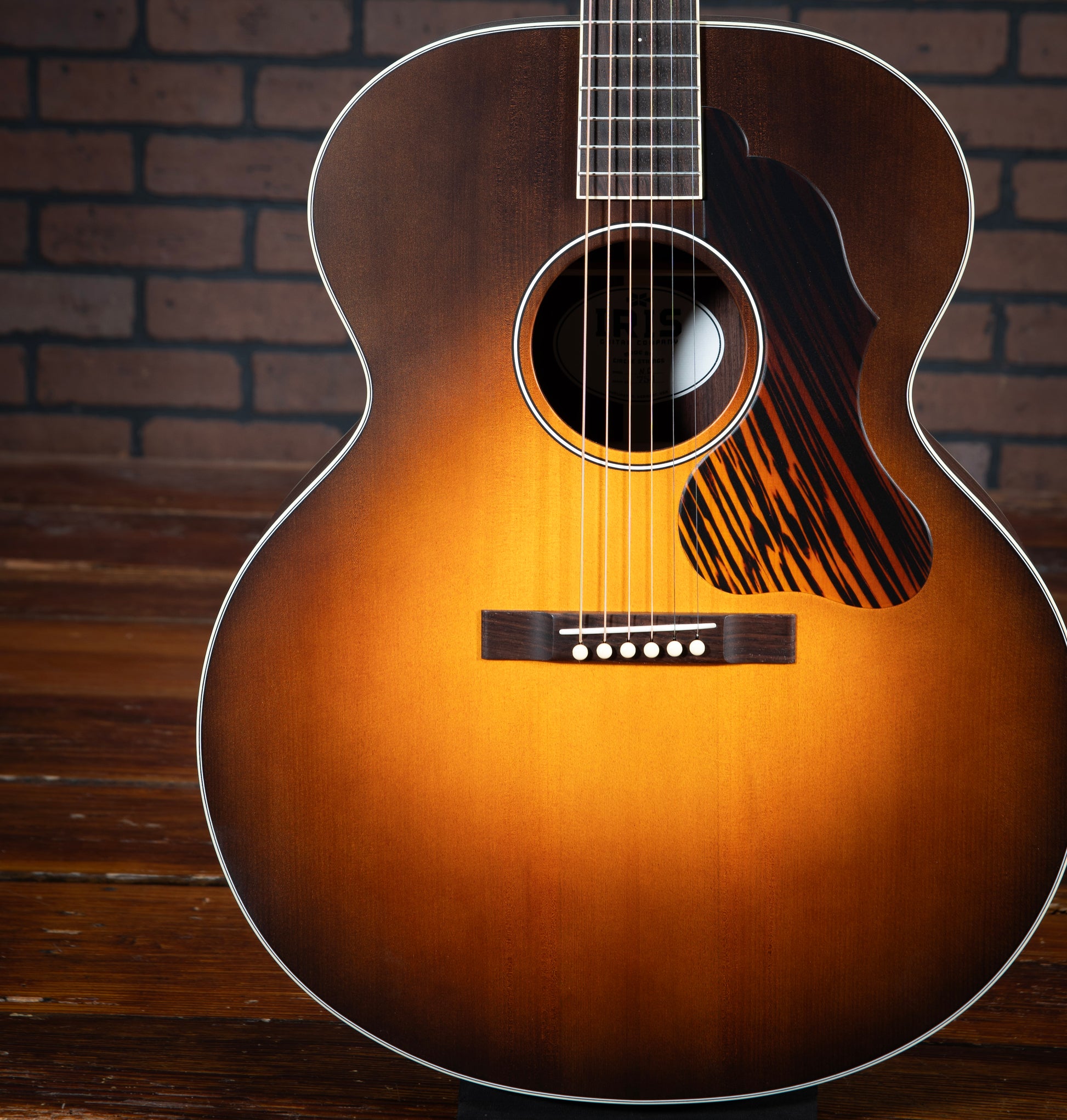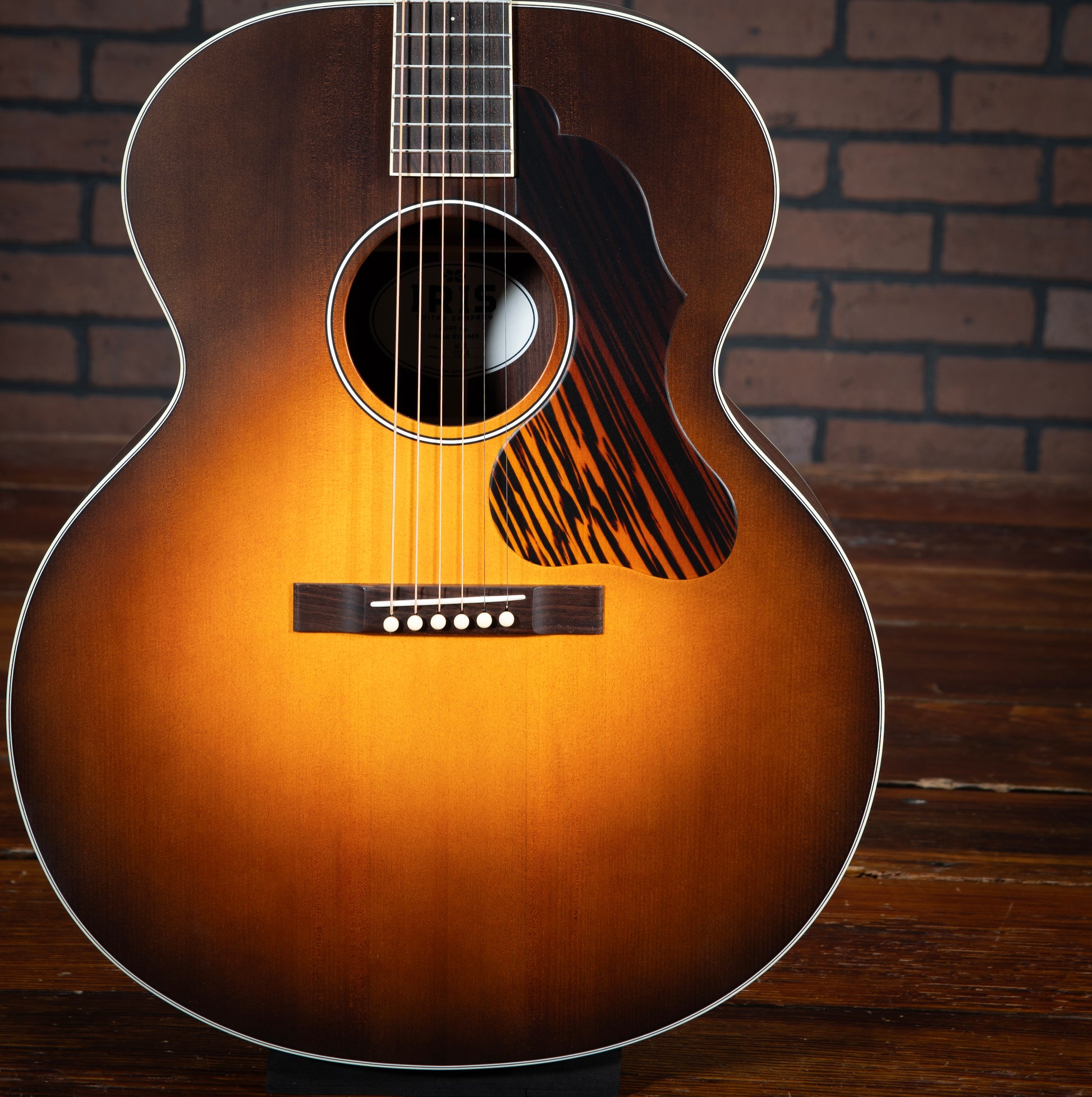 Iris ND-200 Burst – The first Iris Jumbo, the ND-200 is named after the company's head luthier, Nick Durkee. The ND-200 has a 25.5” scale and sounds huge! Neck width comes in at 1-11/16”. It has a warm and dry voice, with an nice midrange response. It takes equally well to being strummed with a pick or fingerpicked, in standard or open tunings, and it has a generous amount of headroom and projection. This guitar features rosewood back and sides, a solid Spruce top, Golden Age Relic brass tuners with off white buttons and a bone nut and saddle. The guitar pictured is the exact instrument that is for sale with hardshell case included. All instruments are available at our store showroom in Warrenton, Virginia, and are set up by our luthiers to the buyer’s personal specifications at no additional charge. All instruments are guaranteed to be packed safely and freshly set up per your specifications. Please email or call and we’d be happy to provide an in-hand description of the instrument and answer any questions you have.