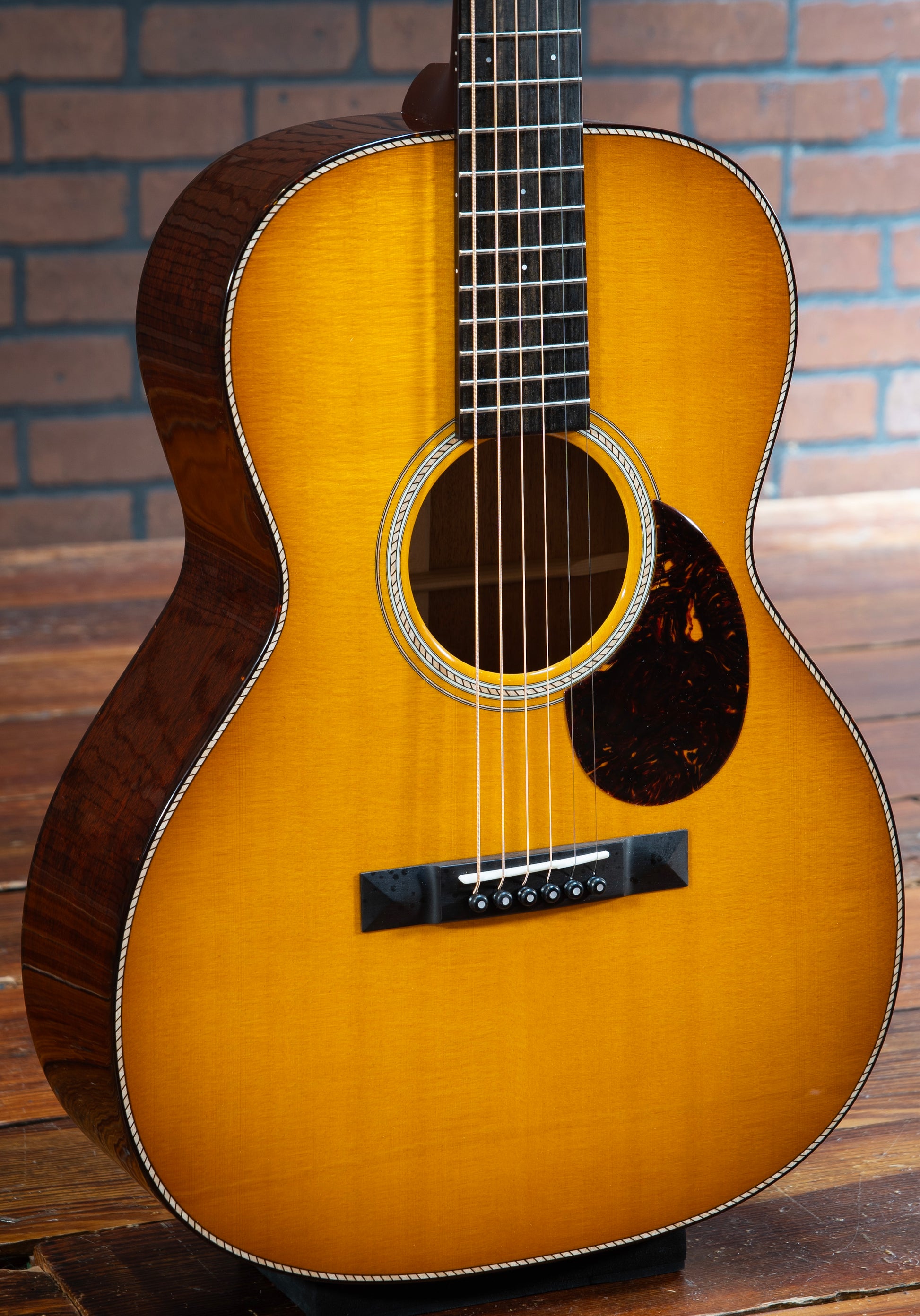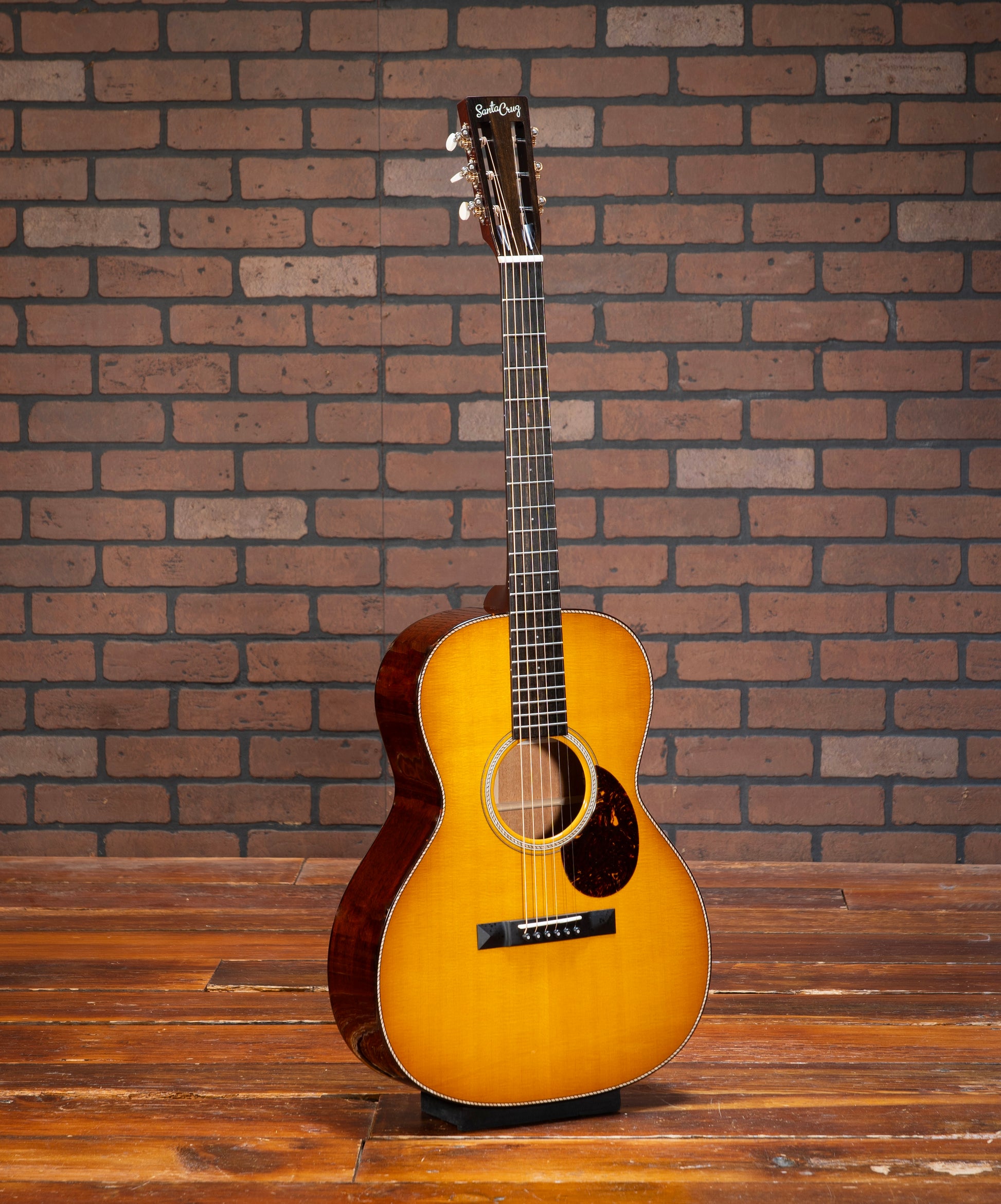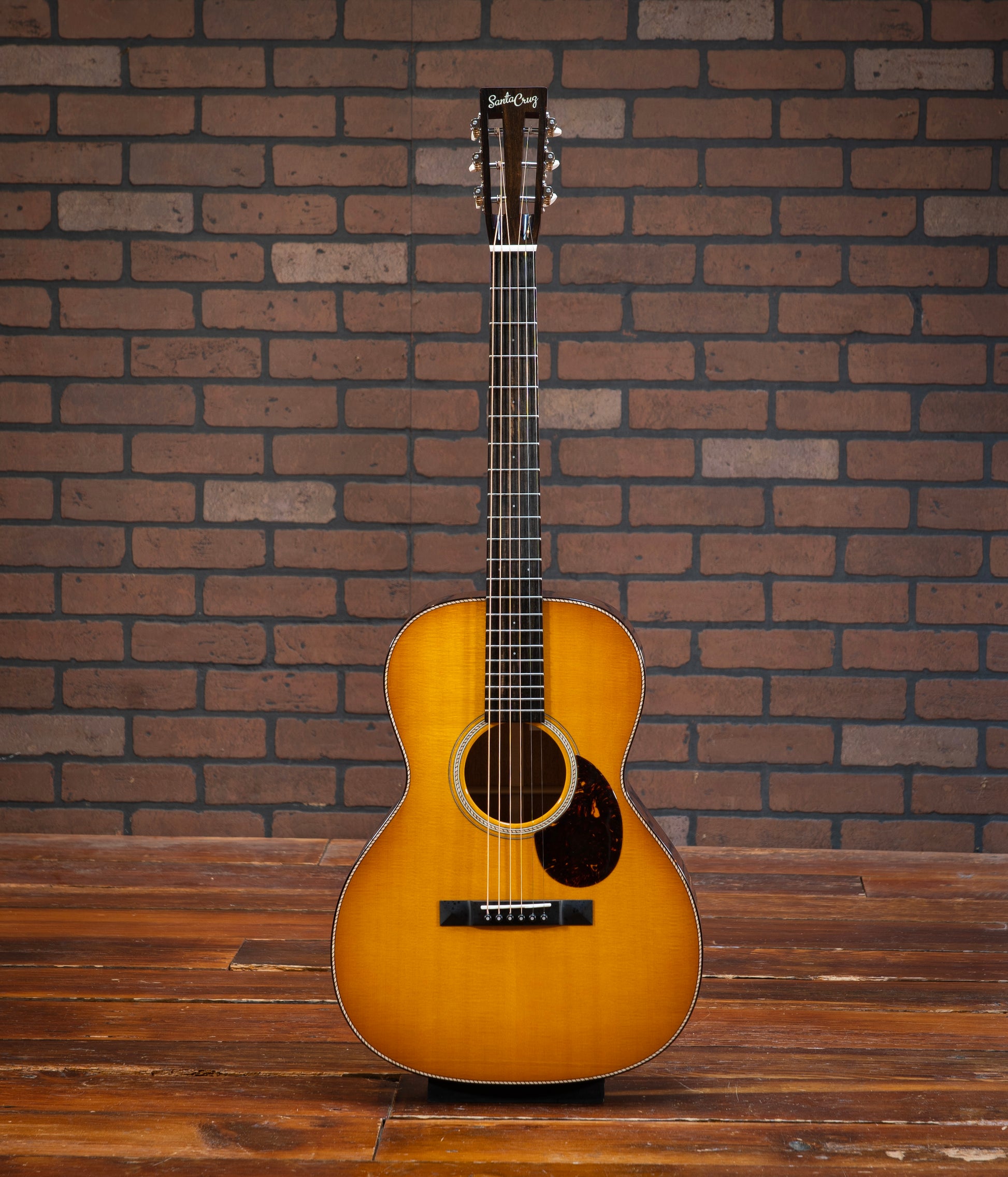 Santa Cruz H13 - This stunning Santa Cruz H13 model guitar is a masterpiece of craftsmanship and tonal excellence. The combination of mahogany back and sides with a Sitka spruce top ensures a rich, balanced sound with impressive projection and warmth. The Adirondack braces, attached with hot hide glue, provide superior strength and resonance, enhancing the guitar's tonal quality. The fingerboard is adorned with elegant 2mm Mother of Pearl dot inlays, adding a touch of sophistication to its classic design. The tortoise shell binding on the body, fingerboard, and peghead offers a beautiful contrast to the buttered toast sunburst finish, making this guitar a visual delight as well as an auditory one. The cowboy rope rosette and purfling add a unique, intricate detail that sets this instrument apart. This H13 model is perfect for collectors, enthusiasts, or any guitarist seeking an extraordinary instrument with exceptional sound and stunning aesthetics. Don't miss the chance to own this exquisite Santa Cruz H13 model guitar, a true gem for any musician or collector! The guitar pictured is the exact instrument that is for sale. All instruments are available at our store showroom in Warrenton, Virginia and are set up to the buyer’s personal specifications at no additional charge upon purchase. All instruments are guaranteed to be packed safely and freshly set up per your specifications. Please email or call and we’d be happy to provide an in-hand description of the instrument and answer any questions you have.