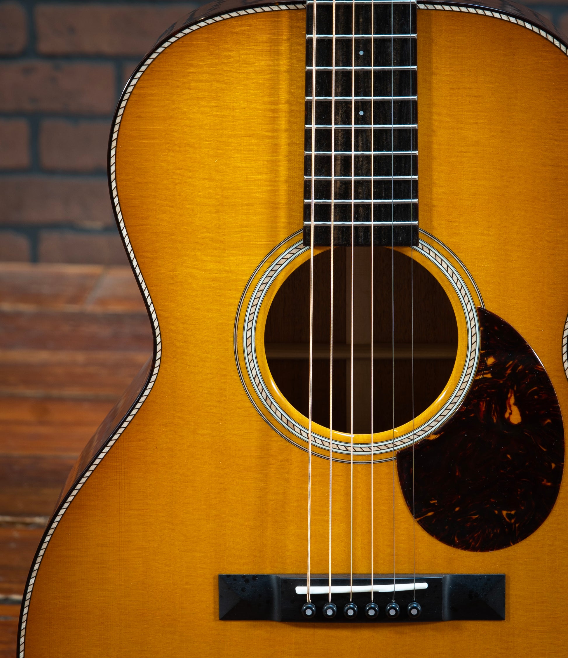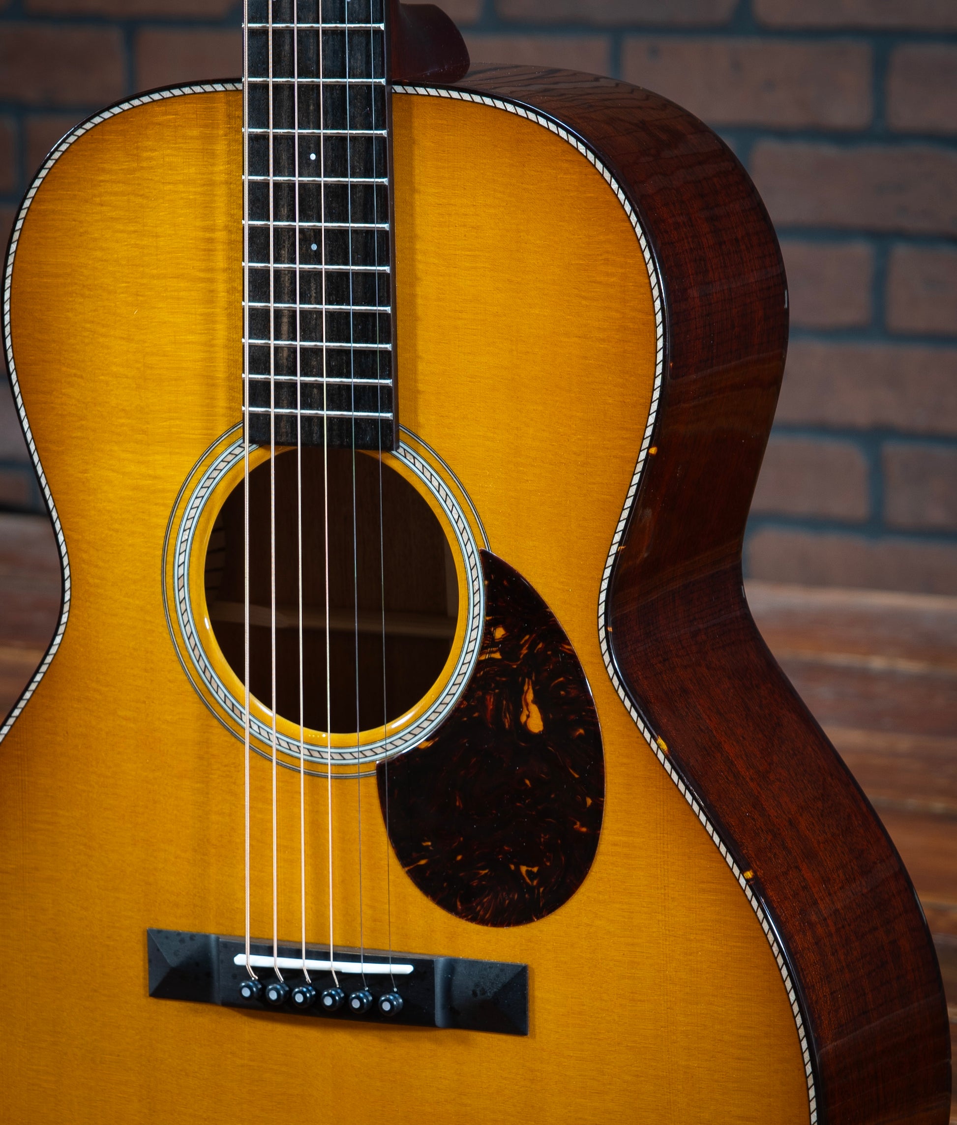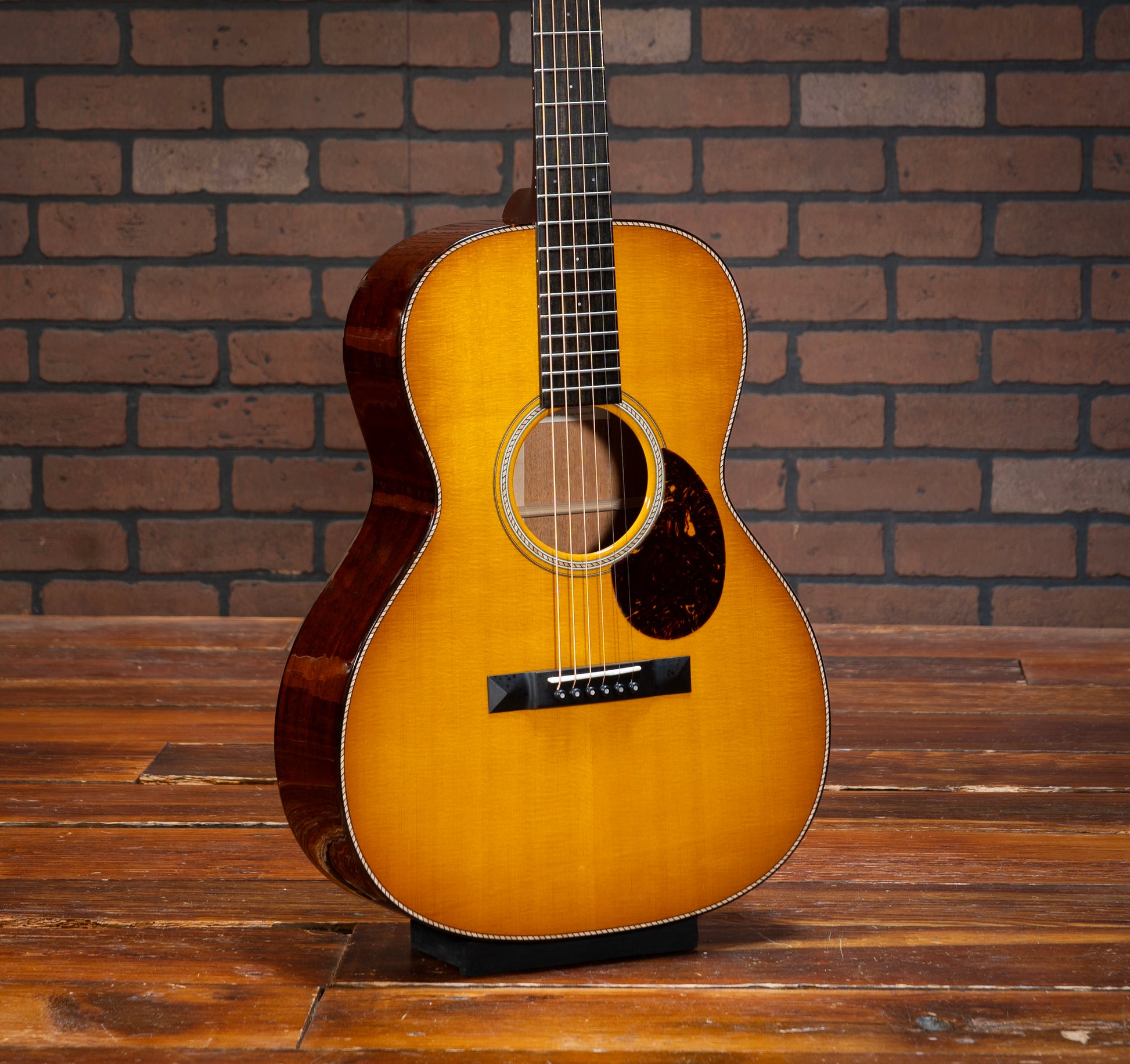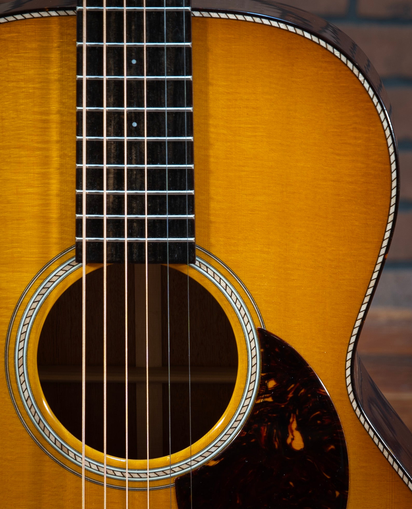 Santa Cruz H13 - This stunning Santa Cruz H13 model guitar is a masterpiece of craftsmanship and tonal excellence. The combination of mahogany back and sides with a Sitka spruce top ensures a rich, balanced sound with impressive projection and warmth. The Adirondack braces, attached with hot hide glue, provide superior strength and resonance, enhancing the guitar's tonal quality. The fingerboard is adorned with elegant 2mm Mother of Pearl dot inlays, adding a touch of sophistication to its classic design. The tortoise shell binding on the body, fingerboard, and peghead offers a beautiful contrast to the buttered toast sunburst finish, making this guitar a visual delight as well as an auditory one. The cowboy rope rosette and purfling add a unique, intricate detail that sets this instrument apart. This H13 model is perfect for collectors, enthusiasts, or any guitarist seeking an extraordinary instrument with exceptional sound and stunning aesthetics. Don't miss the chance to own this exquisite Santa Cruz H13 model guitar, a true gem for any musician or collector! The guitar pictured is the exact instrument that is for sale. All instruments are available at our store showroom in Warrenton, Virginia and are set up to the buyer’s personal specifications at no additional charge upon purchase. All instruments are guaranteed to be packed safely and freshly set up per your specifications. Please email or call and we’d be happy to provide an in-hand description of the instrument and answer any questions you have.