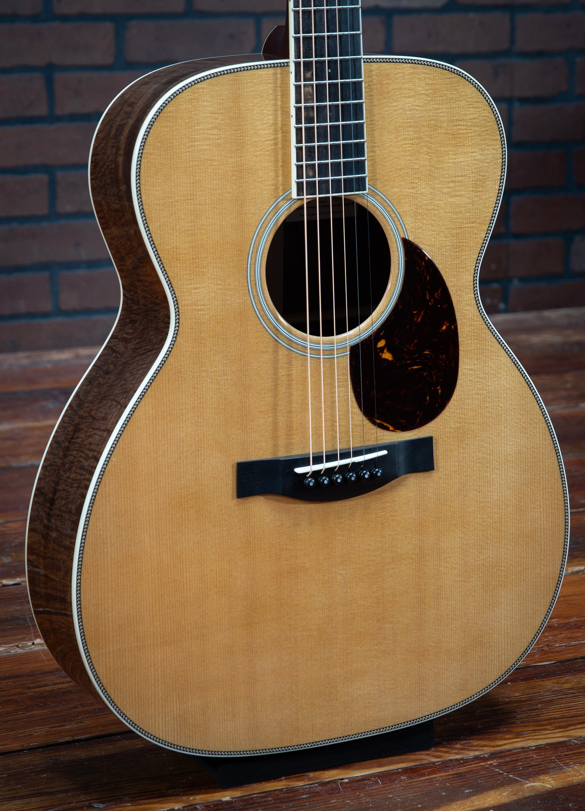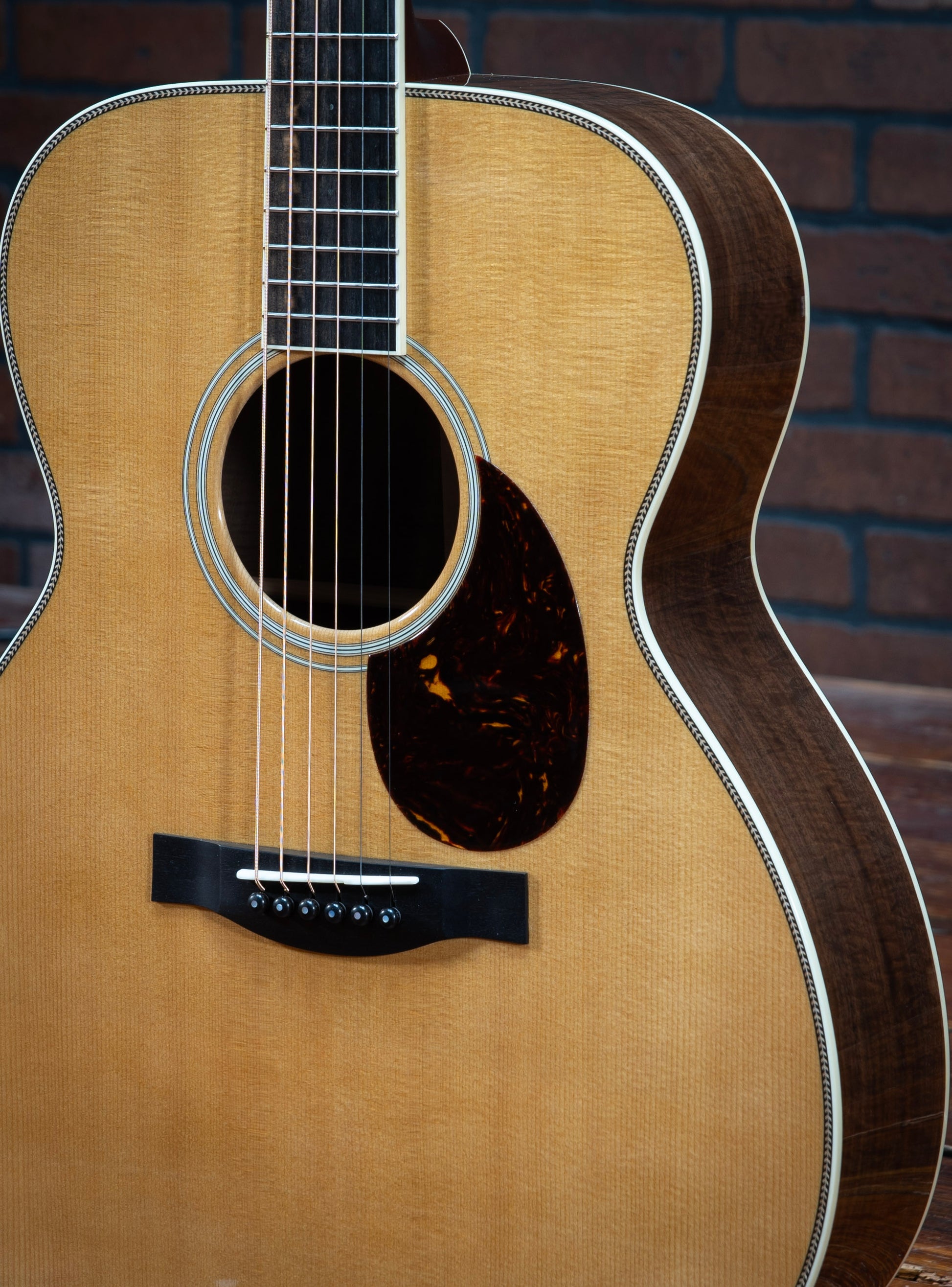 Santa Cruz OM Grand – Introducing a brand new Santa Cruz OM Grand – a masterfully crafted acoustic guitar that balances richness, clarity, and stunning aesthetics. This model boasts a Sitka Spruce top, known for its dynamic range and balanced tonal response, making it ideal for fingerstyle players and strummers alike. Paired with Walnut back and sides, this guitar delivers a warm, articulate sound with strong midrange presence, perfect for players seeking tonal depth and smooth resonance. This OM Grand also features Adirondack bracing attached with hot hide glue, a time-honored technique that enhances the guitar’s resonance and projection, providing a vintage, open tone that will only improve with age. Its vintage-tinted finish gives it the allure of a well-loved classic, yet it’s entirely new and ready to create years of musical memories. Details like the 2mm abalone dots on the fingerboard and an elegant abalone Santa Cruz logo on the headstock add a refined touch, capturing the spirit of traditional luthiery. With Santa Cruz’s commitment to quality and their reputation for responsive, nuanced instruments, this OM Grand offers impeccable craftsmanship and musicality, fulfilling the highest standards for both professional and passionate players. Own an instrument that’s not just a guitar but an heirloom in the making. The guitar pictured is the exact instrument that is for sale. All instruments are available at our store showroom in Warrenton, Virginia and are set up to the buyer’s personal specifications at no additional charge upon purchase. All instruments are guaranteed to be packed safely and freshly set up per your specifications. Please email or call and we’d be happy to provide an in-hand description of the instrument and answer any questions you have.