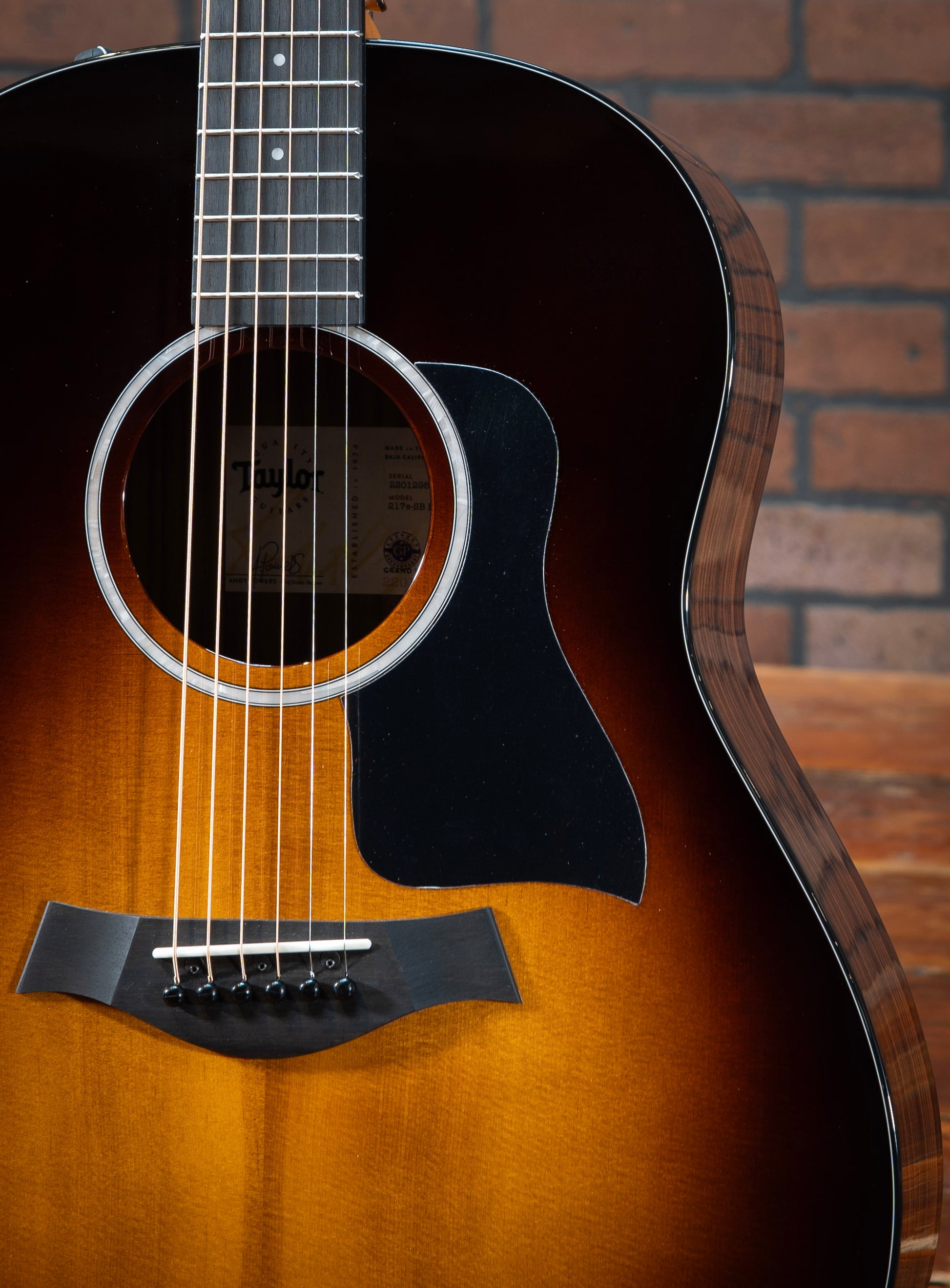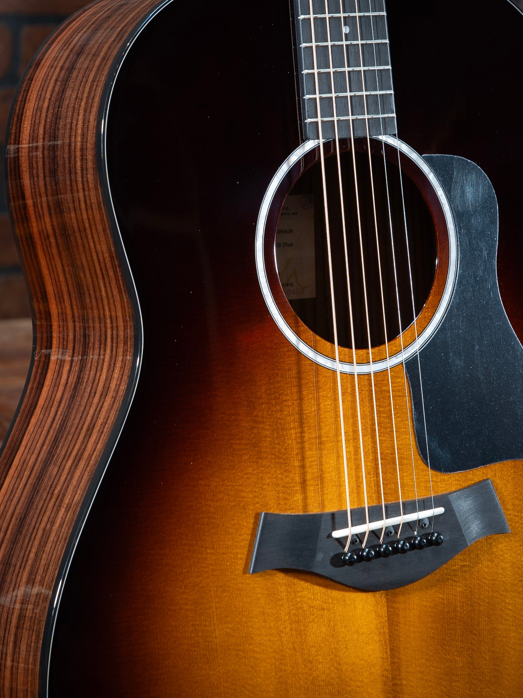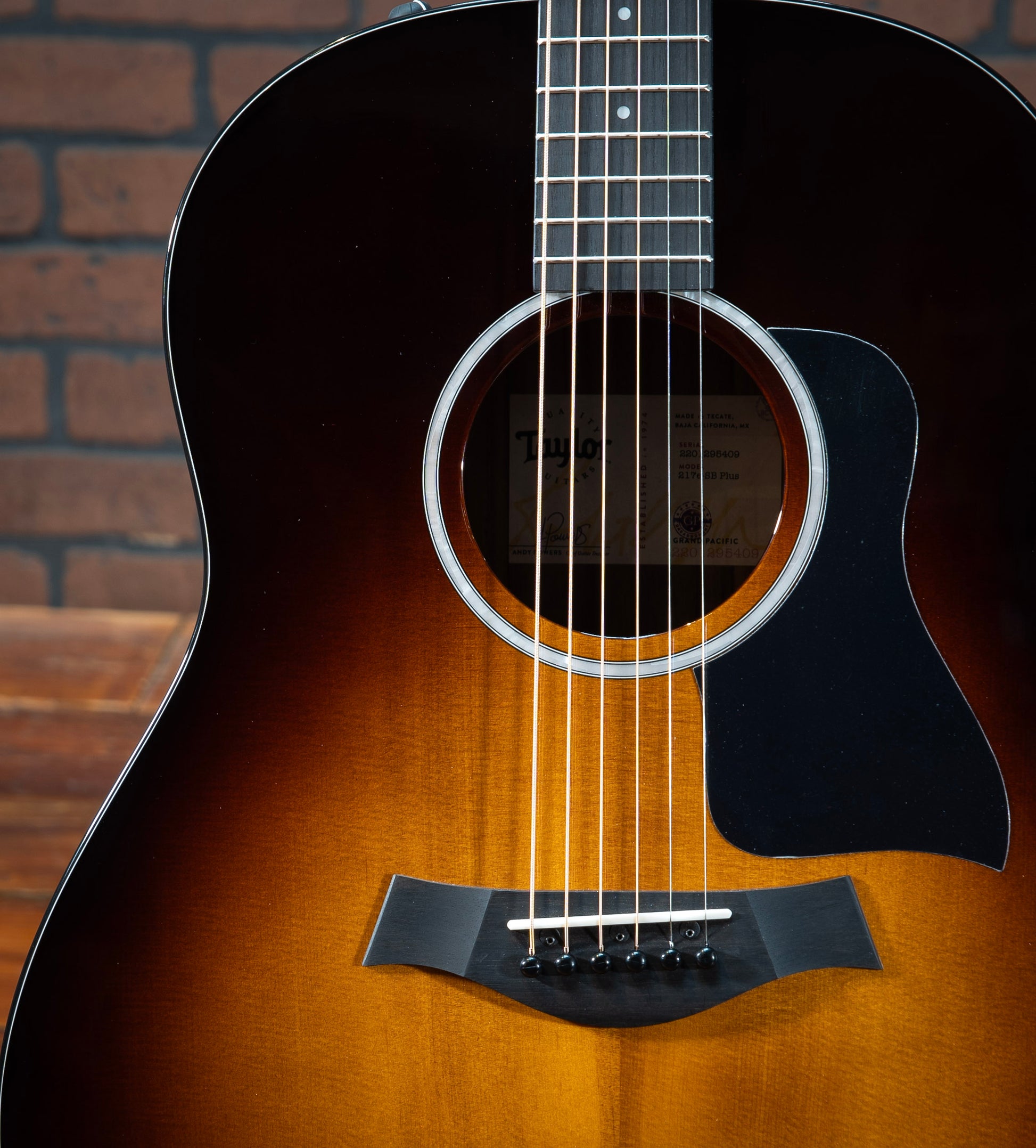 Taylor 217e Plus SB - Crafted with a torrefied Sitka spruce top, our Grand Pacific round-shoulder dreadnought body shape and tone-enhancing internal bracing, the 217e Plus SB Plus offers players a premium acoustic playing experience with a rich, powerful voice. Thanks to our proprietary roasting process for the spruce top, this model yields bold projection with a warm, aged-in quality and clear low-end power, adding up to a seasoned neo-vintage sound that's sure to provide inspiration for players of all skill levels. A slender Taylor neck ensures smooth, relaxed fretting across the frequency spectrum, and built-in ES2 electronics produce clear, organic tone whenever you need to plug in. This Plus model features upgraded appointments such as a full-body gloss finish and a striking sunburst top treatment, and includes a sturdy, lightweight AeroCase for storage and transportation. The guitar pictured is the exact instrument that is for sale. Please review all pictures carefully for detail. All instruments are available at our store showroom in Warrenton, Virginia, and are set up to the buyer’s personal specifications at no additional charge upon purchase. Instruments may not be shipped in the original shipping container. All instruments are guaranteed to be packed safely and freshly set up per your specifications. Please email or call and we’d be happy to provide an in-hand description instrument and answer any questions you have.