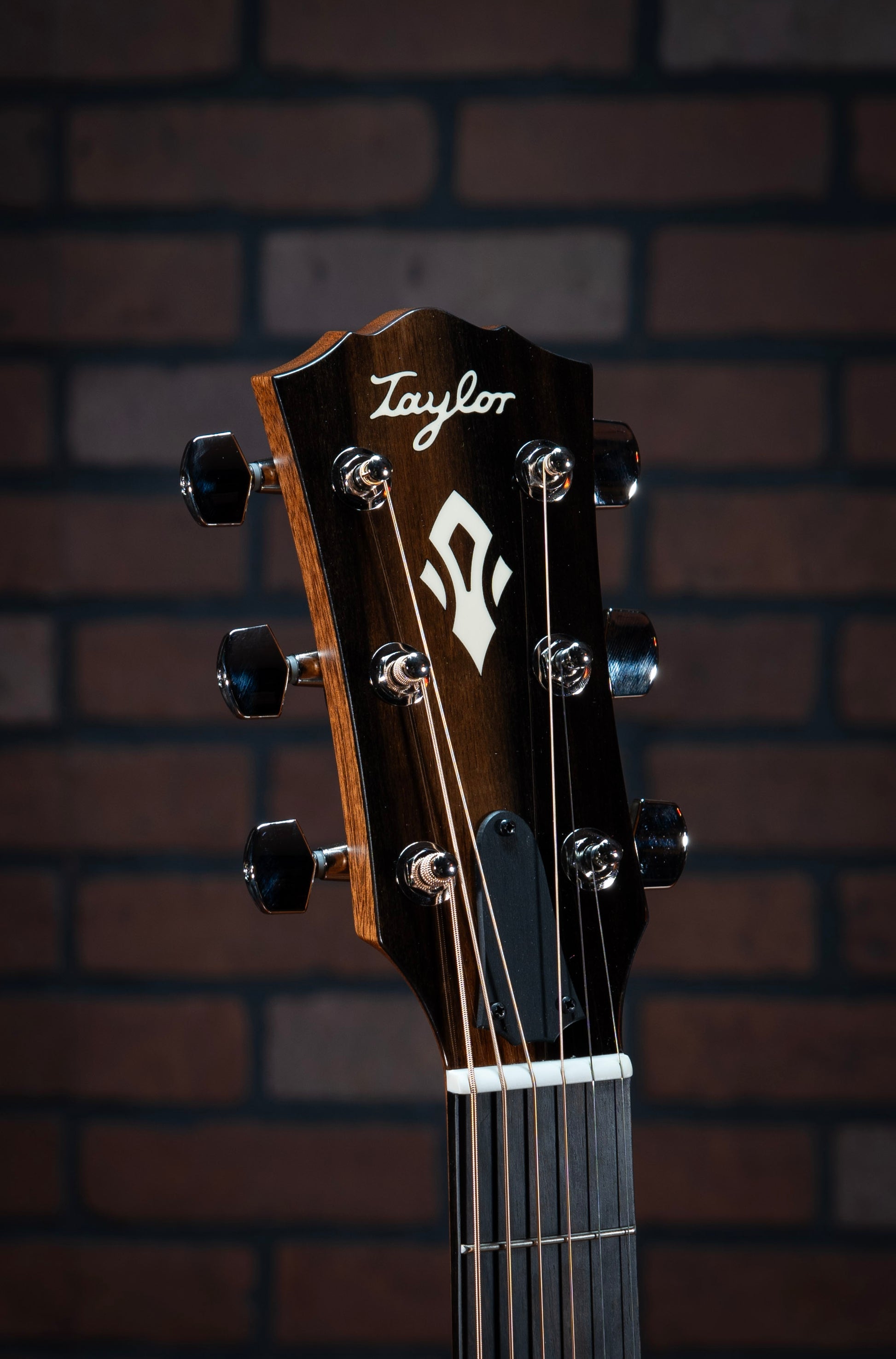 Showcasing the Gold Label Collection’s unique design details, this model features a modified headstock with an angled back cut and script-style Taylor logo inlay and a firestripe pickguard with a distinct shape. The appointment package also includes a Honduran rosewood Curve Wing bridge with Indian rosewood bridge pins, cream-colored Crest inlays on the fretboard and peghead, cream body binding, and a cream single-ring rosette. Outfitted with Taylor nickel tuners and LR Baggs Element VTC electronics, the Gold Label 517e ships in a British Cocoa deluxe hardshell case.