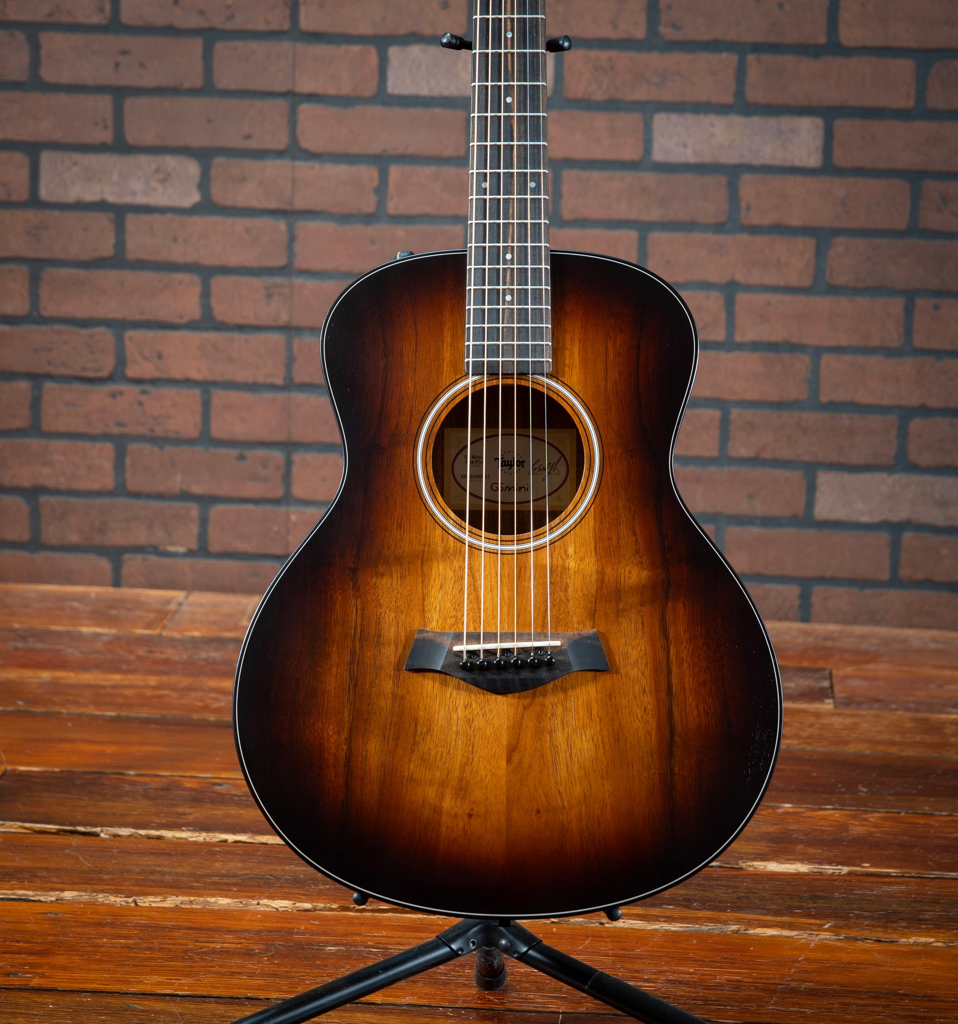 Taylor GS Mini-e Koa Plus - This gorgeous all-koa model elevates the popular scaled-back GS Mini design to new aesthetic heights. The GS Mini-e Koa Plus boasts a solid Hawaiian koa top with layered koa back and sides, serving up a vibrant, punchy tone with plenty of power despite its compact size. The Taylor neck adds another dimension of playing comfort with easy fretting for players of all skill levels, making it a great choice for virtually any musical scenario. An alluring matte finish treatment draws out koa's visual character, and ES2 electronics provide quick plug-and-play utility in amplified situations. The GS Mini-e Koa Plus ships with a durable AeroCase that's one-third the weight of a hardshell case.