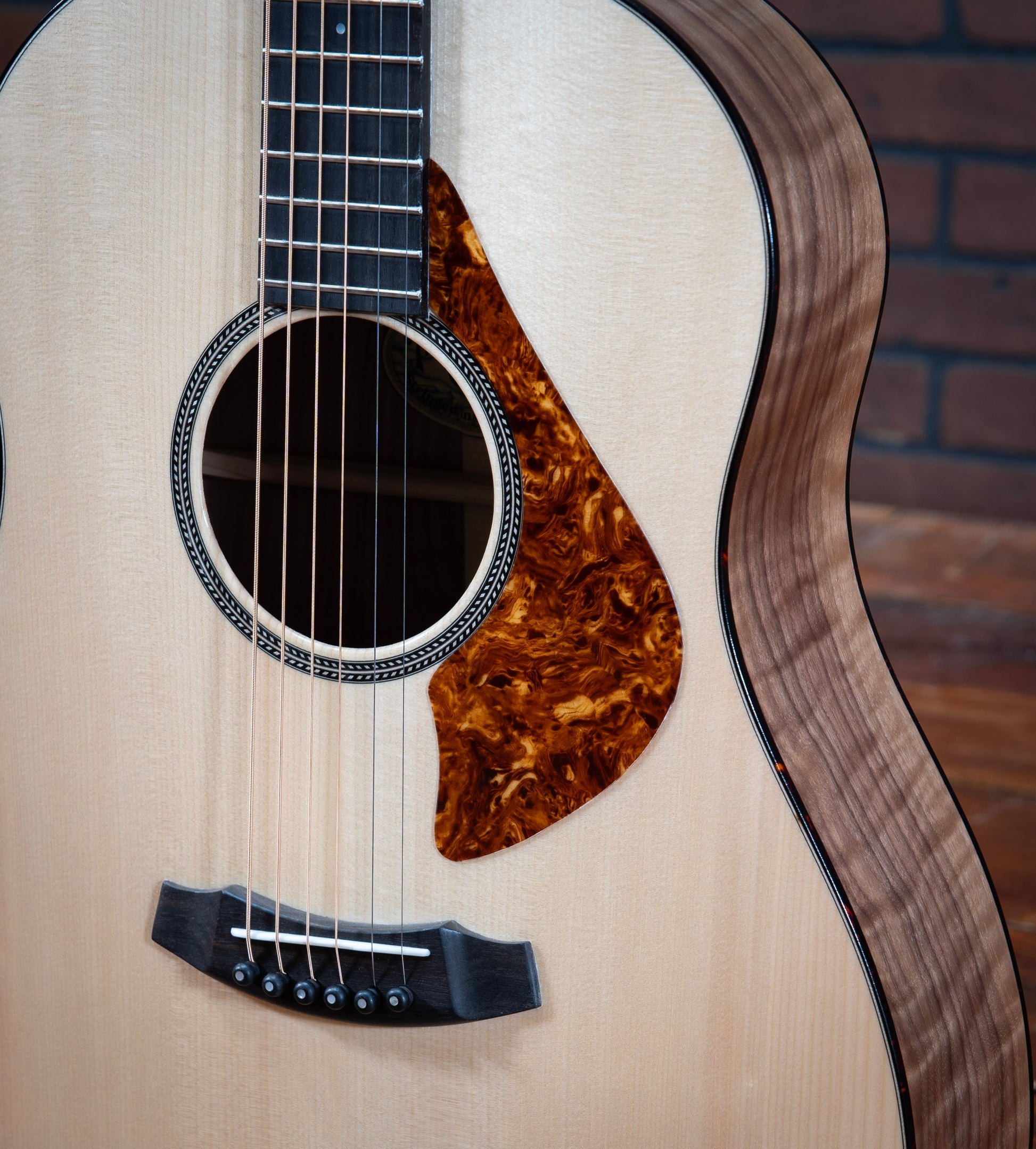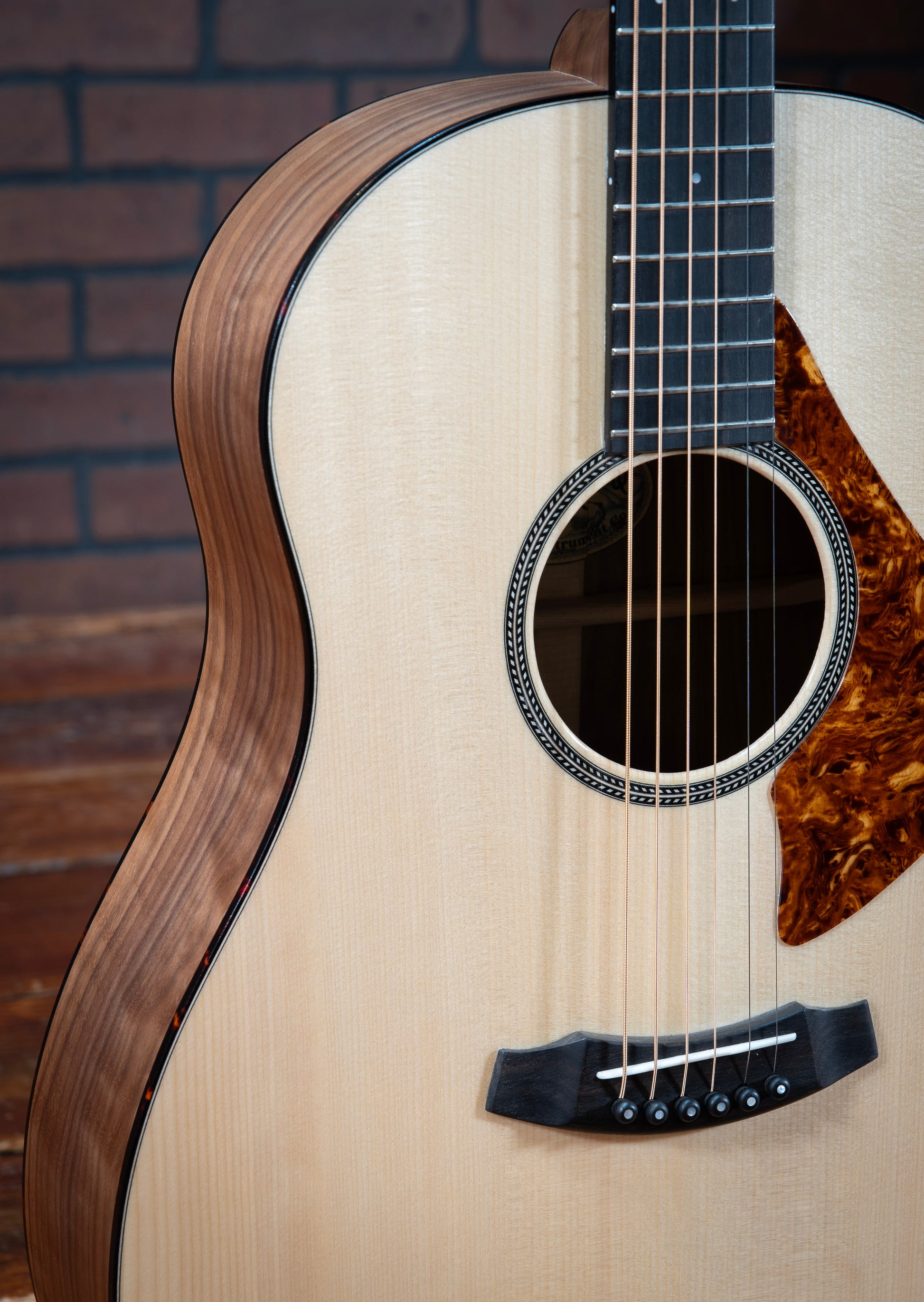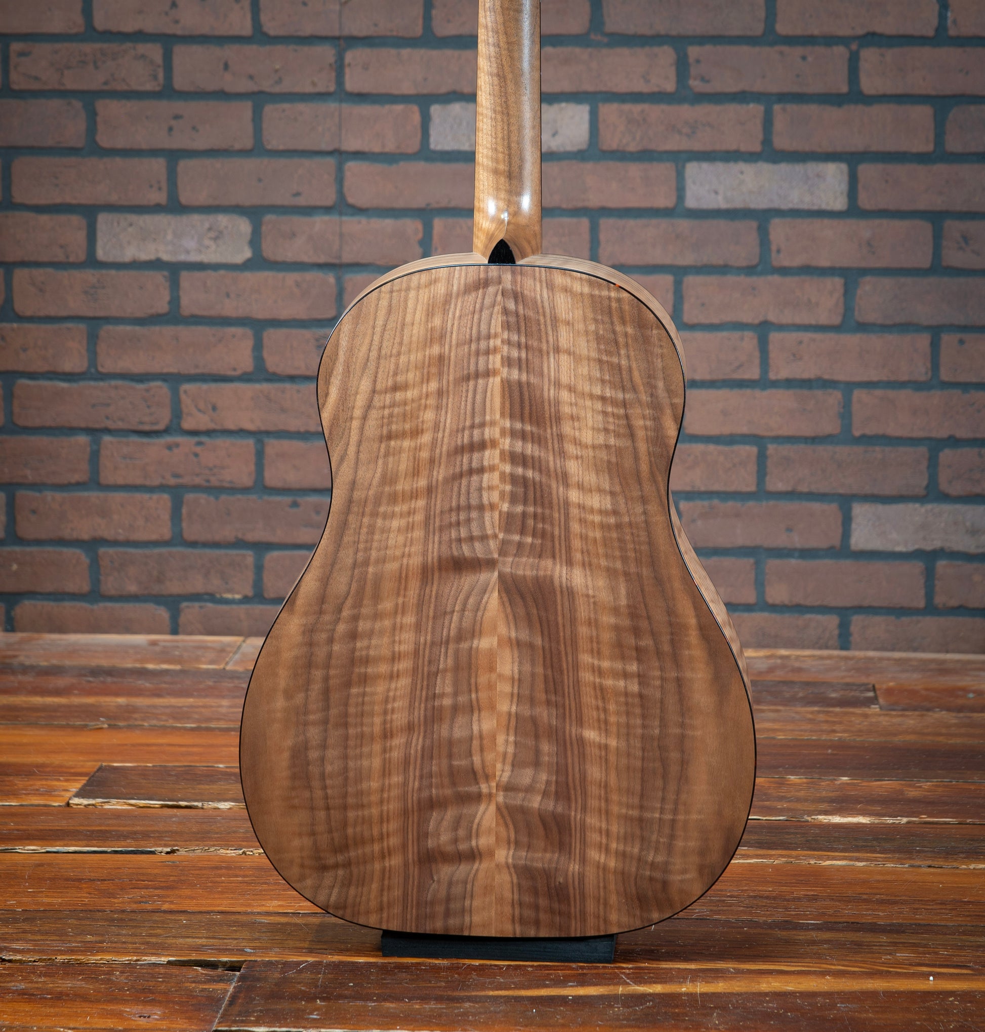 - Back & Sides: Solid Curly Walnut from Tennessee – warm, rich, and resonant
